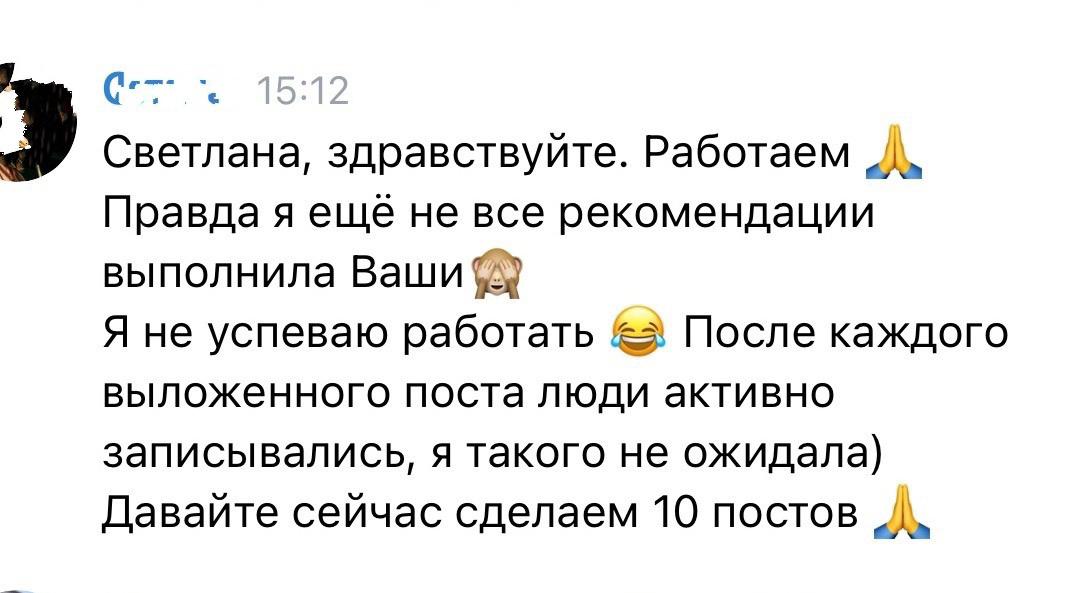 Итог: каждый пост продавал, люди записывались на массаж после каждой публикации