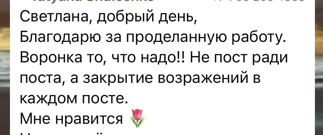 Что сделано: разработана минимальная воронка из 5 постов(пожелание заказчика)